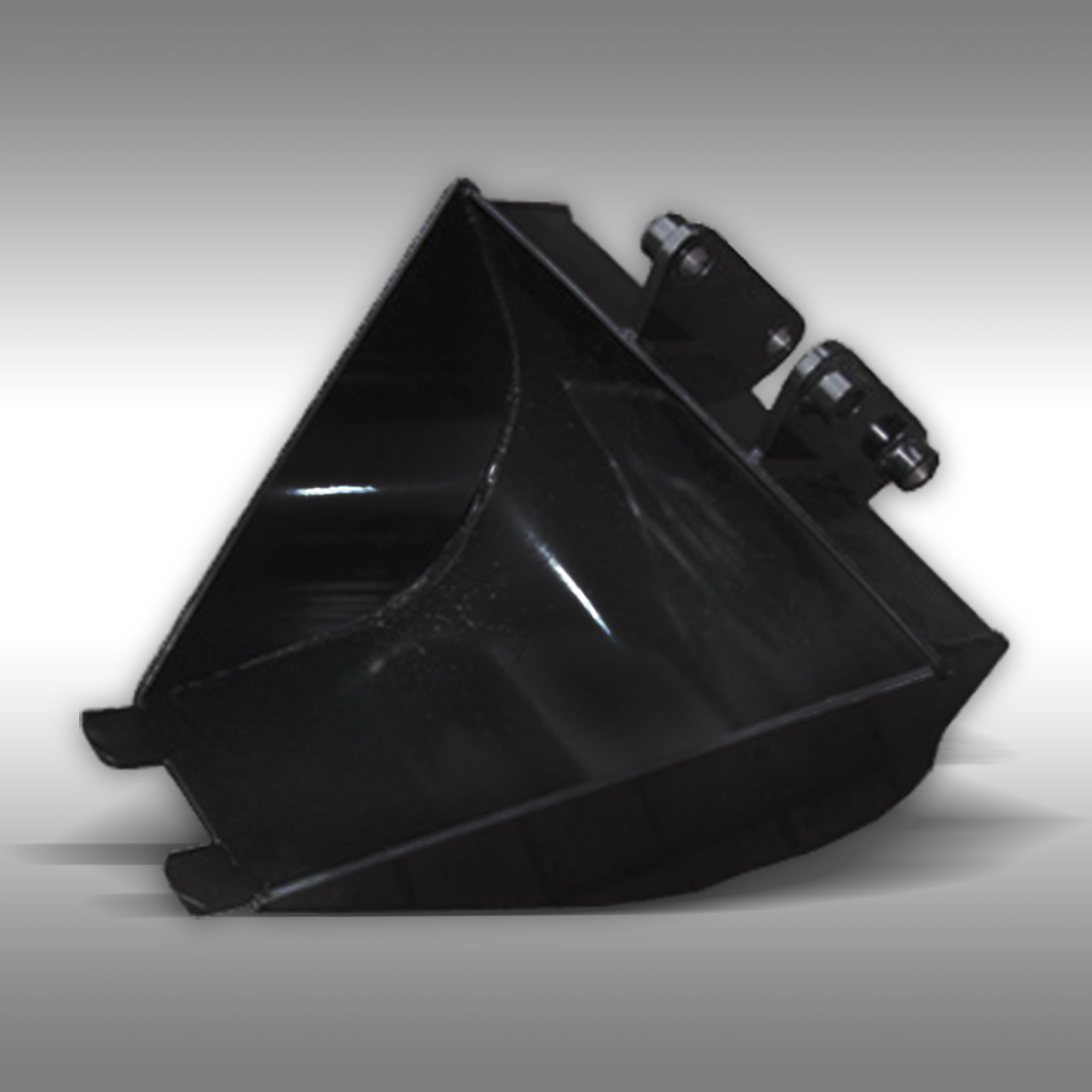 O Balde adequado para a nossa mini escavadora Jansen MB-300 com perfil de vala (largura acima de 600 / abaixo de 200 mm).