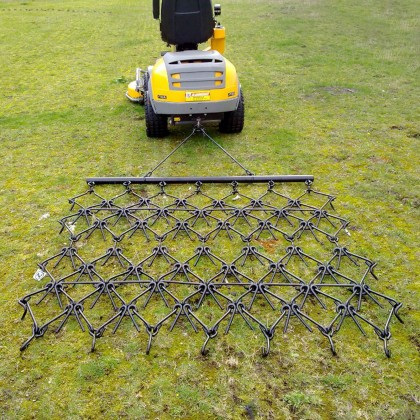 Esta grade de pastagem é ideal para tratores pequenos, moto 4, quadriciclos ou cortadores de relva. Tem uma largura total de 137 cm, um comprimento de 135 cm e pesa quase 80 kg.