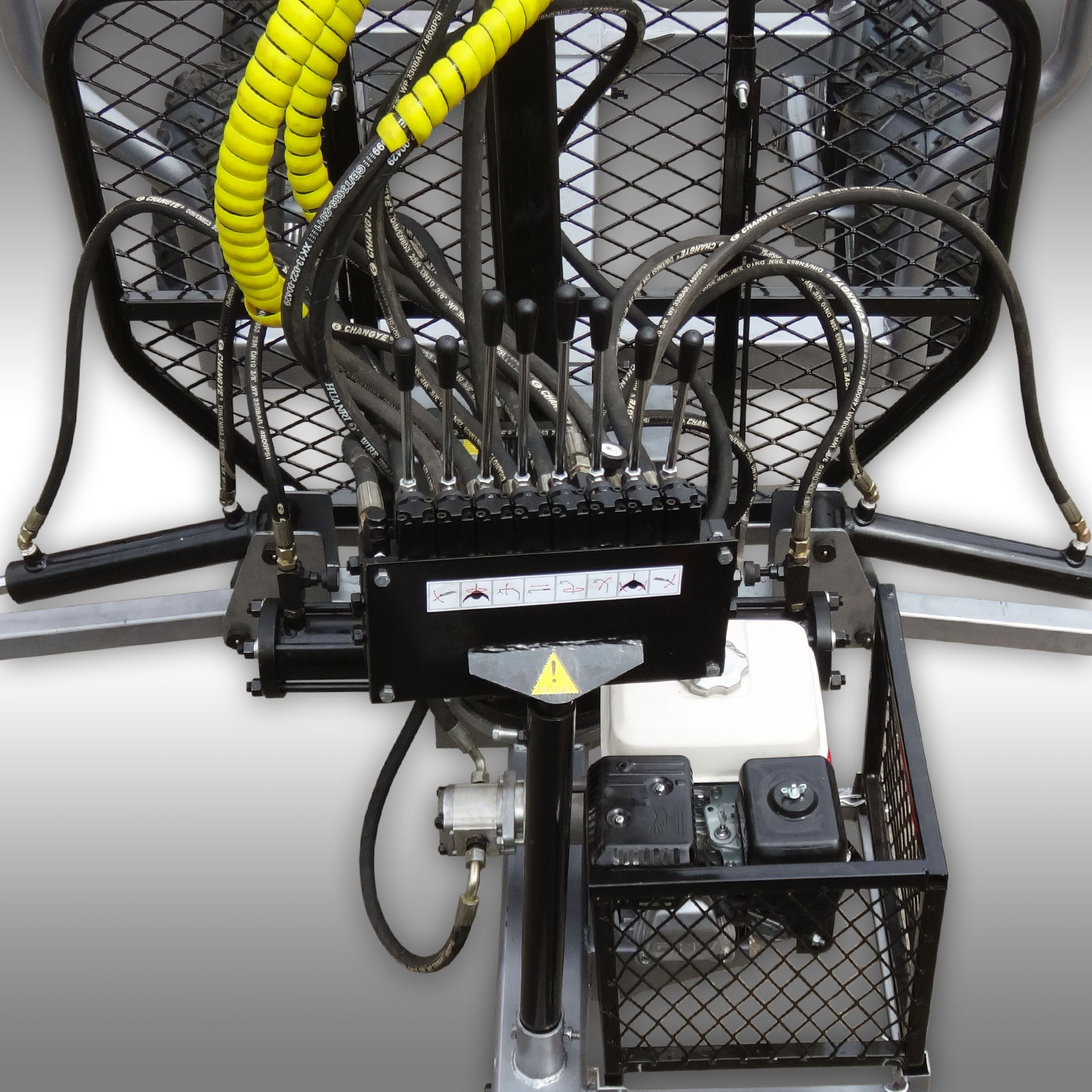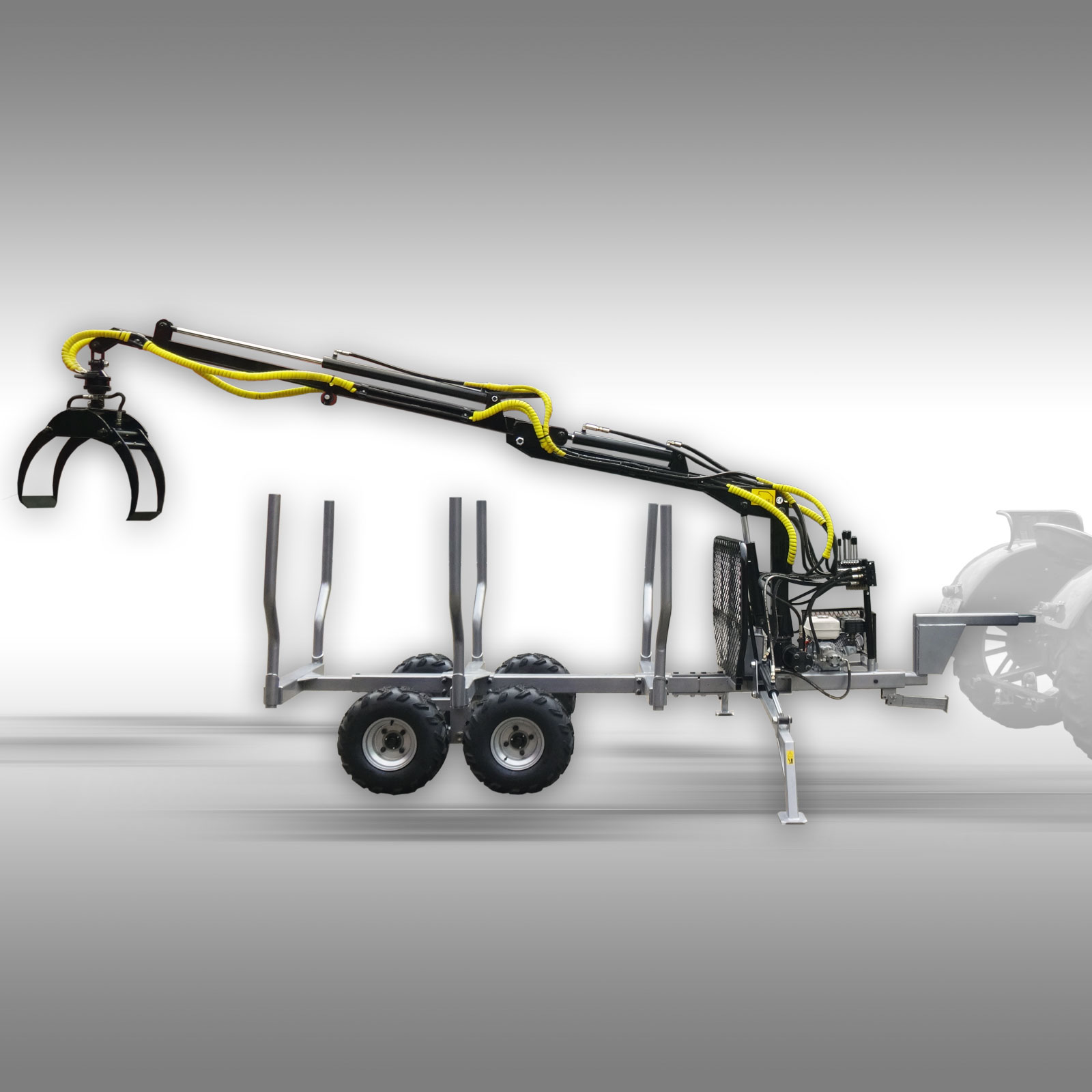 A grua de carga incluída no escopo de entrega tem um alcance giratório de 180 graus e um alcance máximo de 3,8 m. Com um raio máximo de 3,8 m, tem uma capacidade de carga de 200 kg. Com um raio de 1,5 m, o guindaste transporta 300 kg. O guindaste possui uma garra hidráulica que pode girar 360 graus.