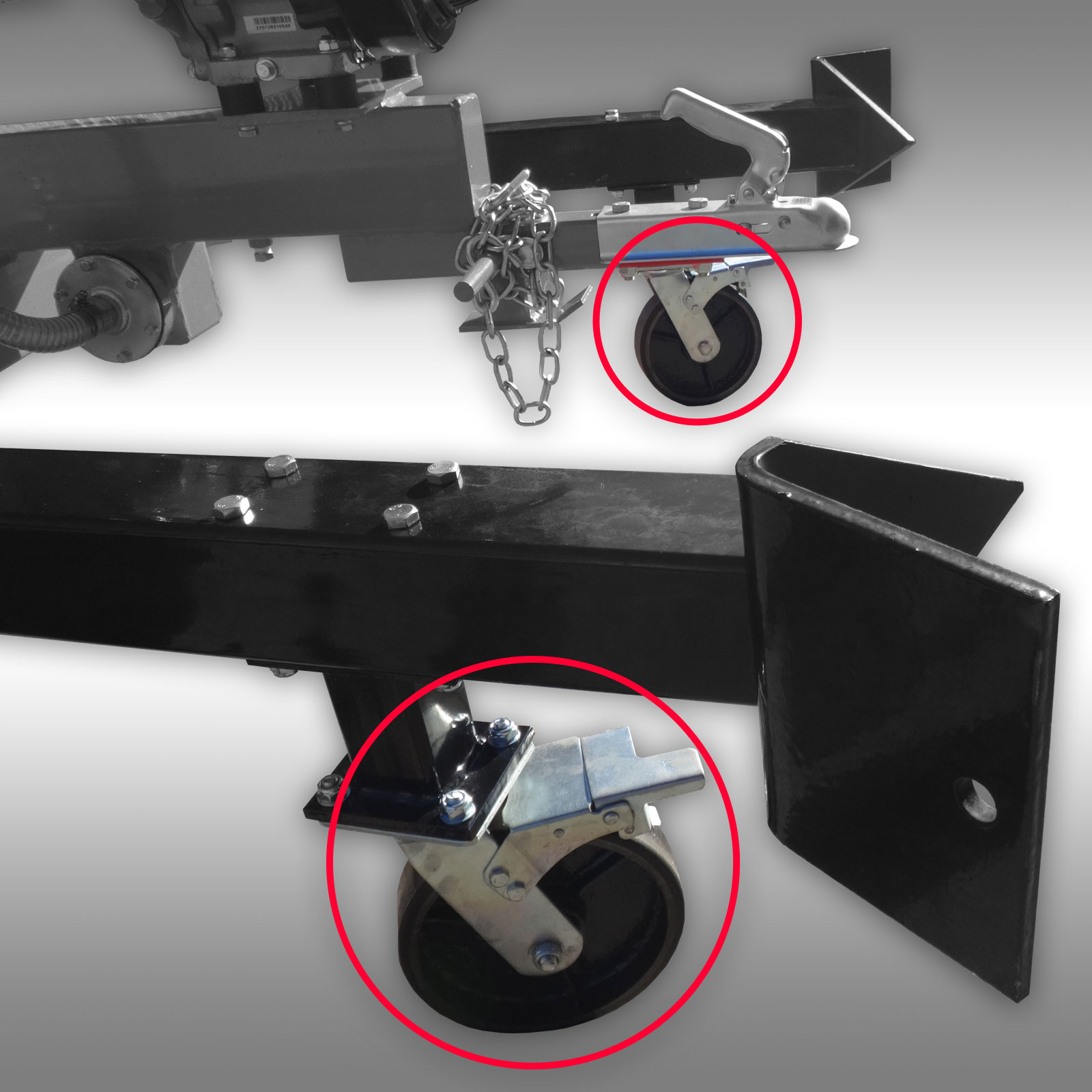 Estas rodas de transporte para nossas mini escavadeiras Jansen MB-300 podem ser facilmente parafusadas aos suportes da escavadeira, os furos para isso já estão disponíveis.