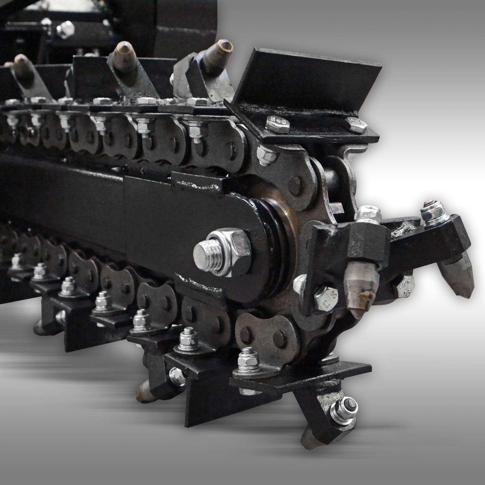 A corrente de escavação é considerada uma peça de desgaste e não está coberta pela garantia. Embora seja fabricada em material de alta qualidade, pode sofrer desgaste ou danos em solos muito duros, com pedras, raízes ou outros obstáculos subterrâneos.