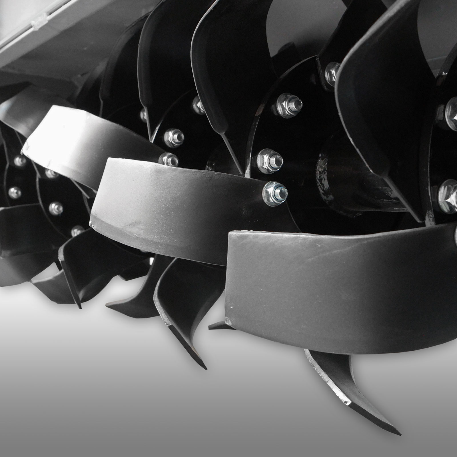 A largura de trabalho é de aproximadamente 220 cm e a profundidade de fresagem é de no máximo 16 cm (dependendo das condições do solo). Isso pode ser ajustado usando os patins laterais. As 9 fileiras de lâminas de corte robustas são montadas no eixo do rotor estável. O timão é acionado pela tomada de força incluída no escopo de entrega e é pendurado no engate de três pontos do seu trator (Cat. II).