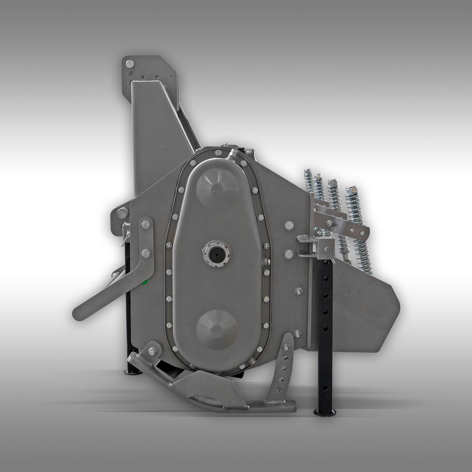 O equipamento é entregue em uma estrutura de aço resistente. Necessita de cerca de 1-2 horas para a montagem final. As caixas de engrenagens estão secas e não cheias. Ambas as engrenagens devem ser preenchidas com óleo de engrenagem (80W90) antes do comissionamento. A marcha superior com aproximadamente 4 litros e a marcha lateral com aproximadamente 3 litros!