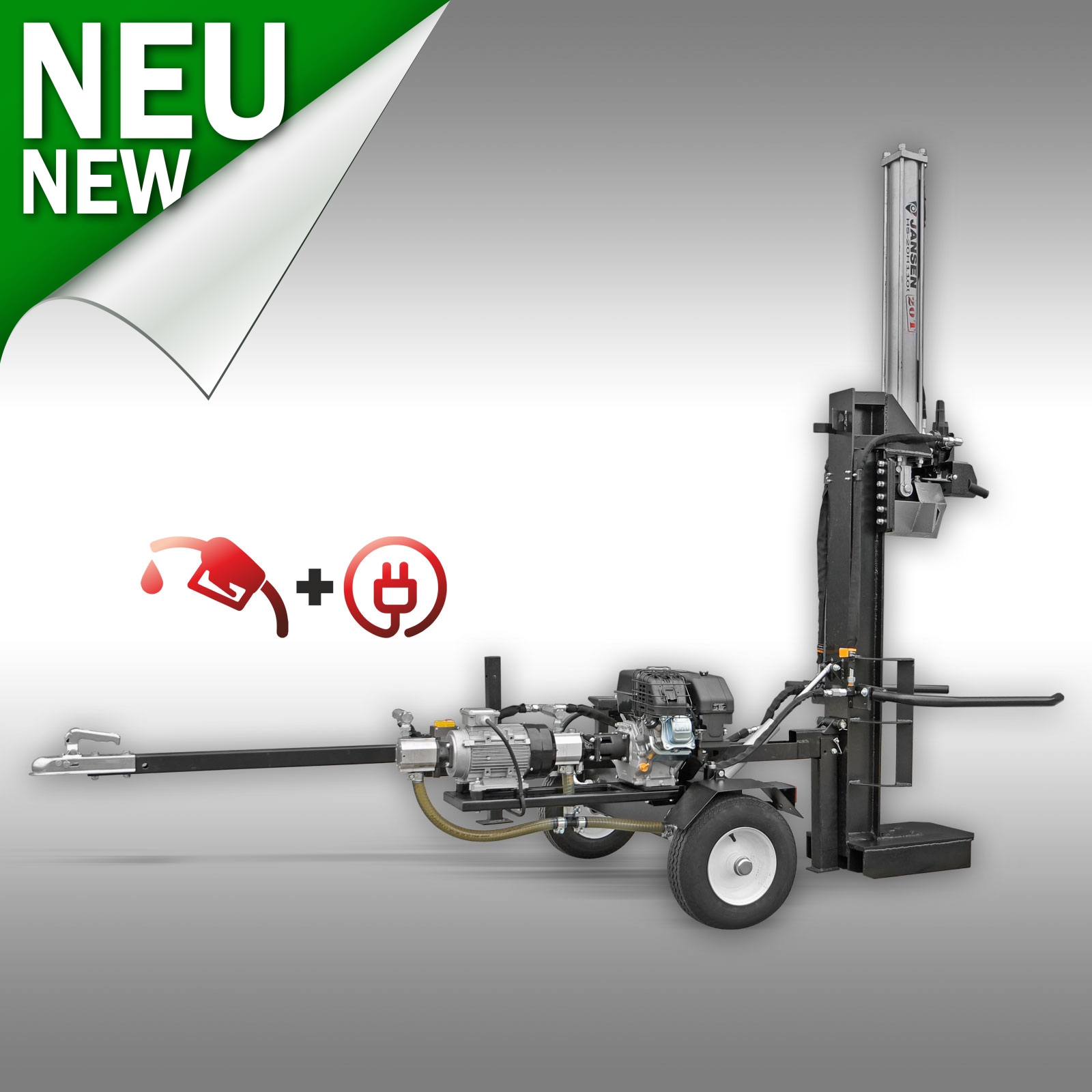 No decorrer de nossas melhorias e otimizações de produtos, este divisor de toras está sendo constantemente desenvolvido. As versões atuais têm algumas vantagens sérias sobre seus antecessores... por exemplo, a operação agora é diretamente no cilindro, o que melhora significativamente a acessibilidade quando parado. Além disso, muitas linhas flexíveis foram substituídas por linhas metálicas montadas permanentemente, o que torna o dispositivo muito mais claro e profissional. As rodas agora têm rolamentos de esferas; isso garante um funcionamento muito mais suave. O último destaque, porém, é a possível operação combinada, com o motor a gasolina de 6,5 cv ou com o motor elétrico. Dependendo da localização, está, portanto, pronto para a ação.
