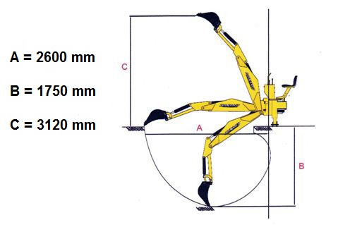 A escavadeira / retroescavadora BHSM-175 trabalha na articulação de três pontos do seu trator e é acionada pela tomada de força. Tem um sistema hidráulico para que a potência só precise ser fornecida no lado do trator através tomada de força. A BHSM-175 é fornecida com um balde de 300 mm e pode girar 180 graus lateralmente - proporcionando um grande raio de ação.